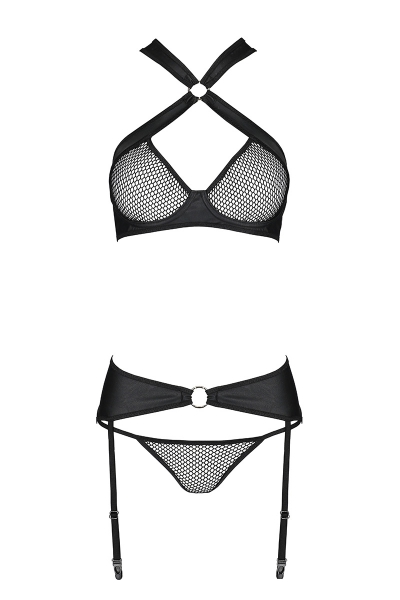Ensemble 3 pièces : soutien-gorge, porte-jarretelles, string (bas non fournis)