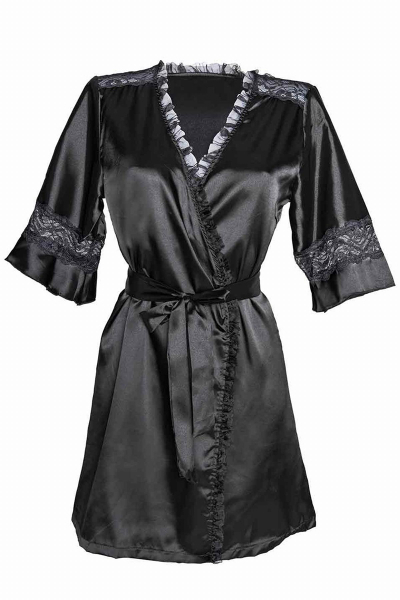 Ce magnifique déshabillé court en satin noir est doux et soyeux, sexy tout en étant confortable à porter.